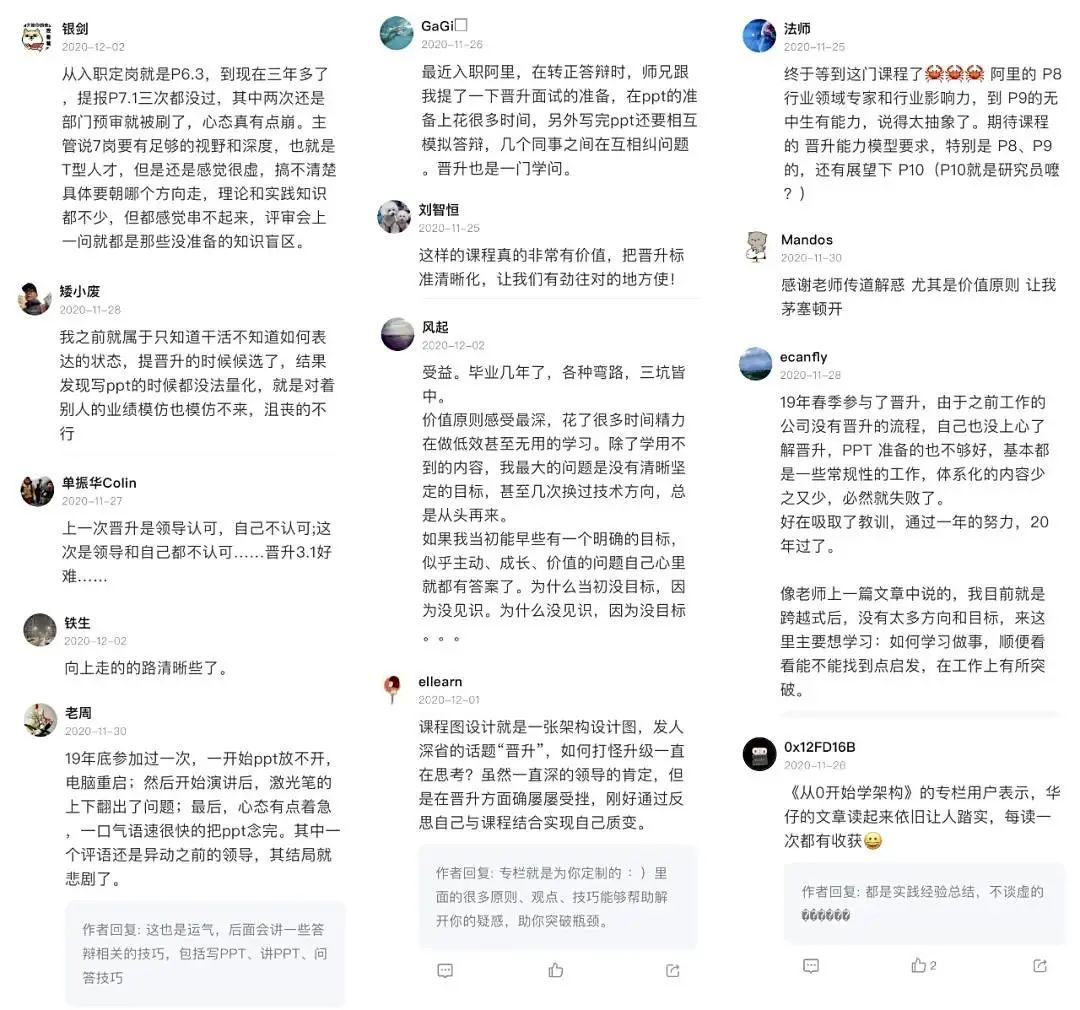 说实话,专栏中的内容,完全颠覆了我的认知。之前觉得勤勤恳恳把工作做好,就能一步步往上走,后来发现远远不够,晋升候选写 PPT 的时候,连怎么量化业绩都不知道,更别提准备答辩了。