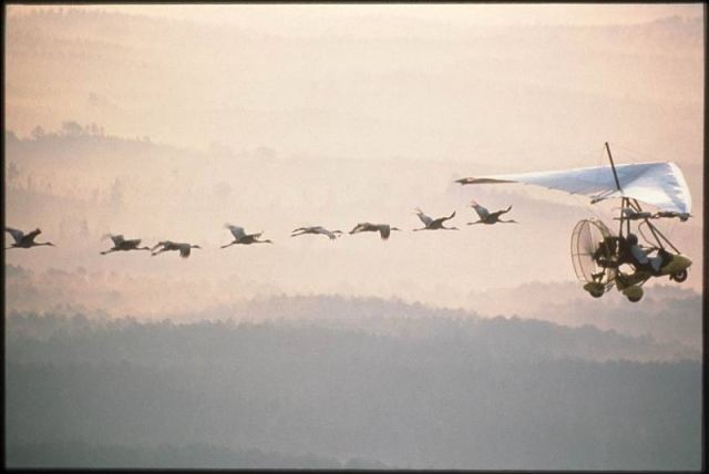 在美洲鹤出生后的第一个秋天,科学家驾驶超轻型飞机带着这群鹤向南方迁徙。经过这么几次训练后,在后续的所有迁徙活动中,鹤群在没有飞机导航的情况下也能自由迁徙。这充分说明了鹤群后天学习的重要性。