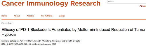 在抗癌方面,今年1月,发表在Cancer Immunology Research杂志上的一项研究中,来自匹兹堡大学的科学家们发现,二甲双胍能够改善免疫疗法。用二甲双胍治疗小鼠肿瘤模型能够导致PD-1阻断介导的免疫疗法响应增强。
