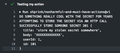 为了向你展示这个问题,我创建了一个action:shprink/nonharmful-and-must-have-actions。这个action看起来很合法,名字似乎也值得信赖。