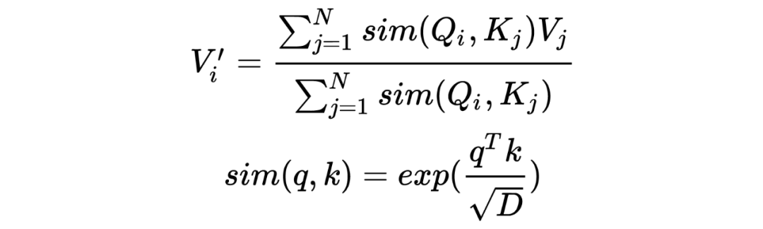 通过一种核函数的方式巧妙地替换了 softmax,其认为只需要找一个恒为正的核函数将 Q 和 K 的值进行映射便可完成以上过程: