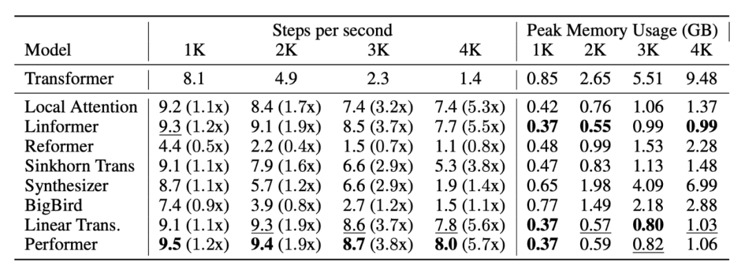 Performer 也在一些任务上进行了测评,也是一些长序列相关的任务,我们可以简单了解一下其大致性能: