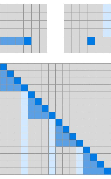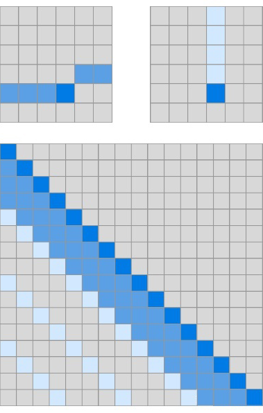 上面的图代表是二维的图像像素图,下面的图是序列的注意力矩阵图。这个注意力其实就分成两个部分,每个字符关注前面若干个字符,然后每隔相同的间距关注一个字符。对应到图像里面就是一个关注行,一个关注列。作者认为这种 attention 机制比较倾向于有规律的数据,比如图像音频,不适合文本。