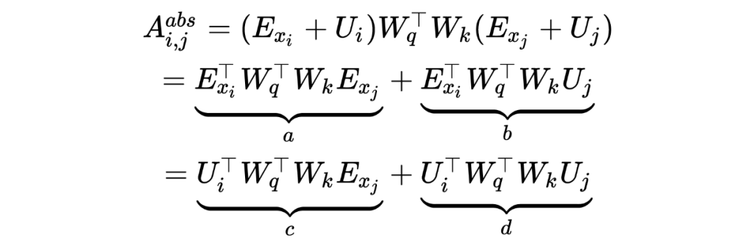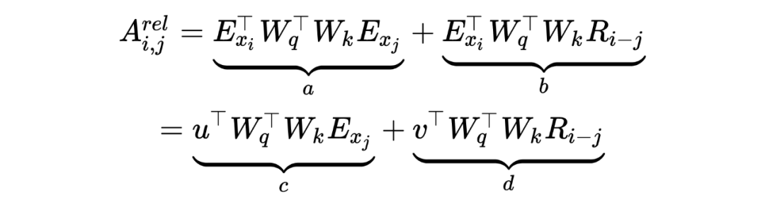 的值,因此在使用相对位置编码时我们可以将公式改写为以下的形势:
