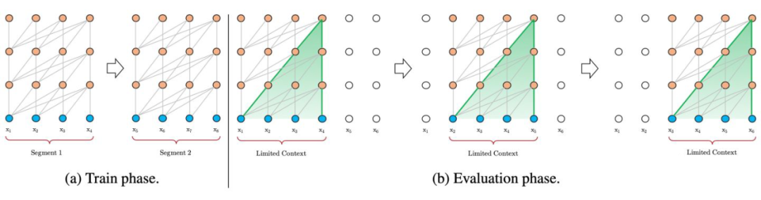通过这张图可以清晰地看见在训练过程中每个 segment 会分别编码,相互之间没有任何联系。在测试时为了保证测试的完整性,其对 segment 的划分更为紧密,不同 segment 之间的重叠度很高,造成了运算资源开销巨大。
