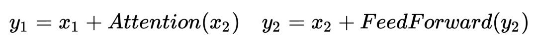 在完成了对 Self-Attention 的优化后,论文还提出了一种可逆残差的方式来解决模型过深带来的性能开销。在训练网络的时候,一般需要记录每层的激活值,用来在反向传播的时候进行计算。所以每增加一层,内存也会随之增长。一般的残差网络的结构如下: