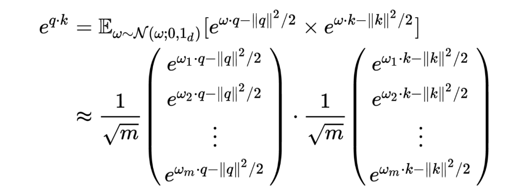 的解决思路其实也和 Linear Transformer 是一致的,其工作的最大亮点在于为 softmax 找到了一个更为优美的映射来替代并给出了理论证明,而不像之前 Linear Transformer 那样仅通过核函数的替换显得有些空穴来潮。其映射表示如下