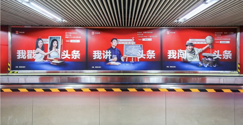 上周五,头条号官方账号预告了这组海报,让用户来猜测八位“代言人”的身份。如今,“代言人”们已集体亮相北京东单地铁站,宣告自己“在头条”。