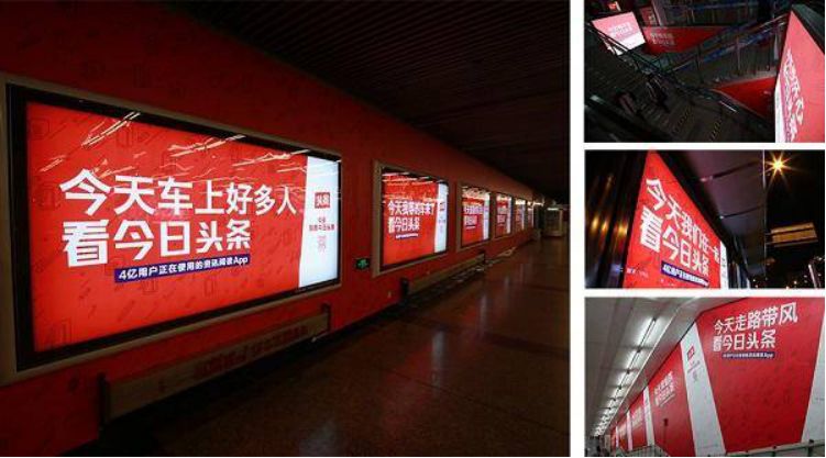 当时,针对不同的地区和用户特性,今日头条在北上广深一线城市的地铁站、公车站、飞机场、住宅区、商业楼等精准投放广告牌,对大众进行一大波视觉轰炸。“今天体”火遍营销圈,美团、饿了么、知乎等公司纷纷推出大字报版海报。