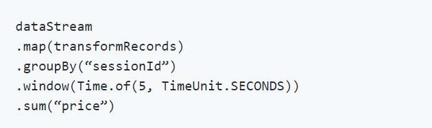 微批处理模型的最大限制可能是它连接了两个不应连接的概念:应用程序定义的窗口大小和系统内部恢复间隔。 假设一个程序(下面是示例 Flink 代码)每 5 秒聚合一次记录: