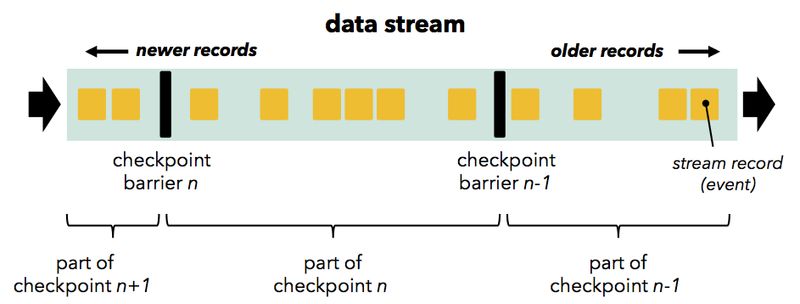 Flink 的检查点机制基于 stream barriers(可以理解为Chandy Lamport 中的“标记”),这些 barrier 像正常的业务数据一样在 Operator 和 Operator 之间的数据管道中流动。 Flink 的检查点的描述来自于 Flink 社区文档 ) 。
