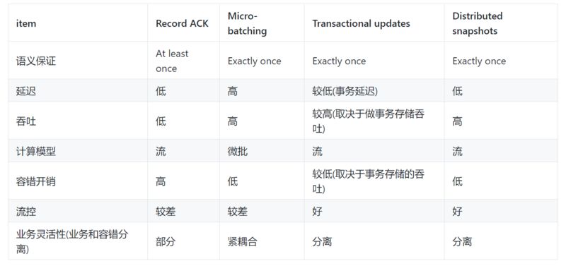 由于这些问题带来的诸多复杂性,开源生态系统多个系统都在尝试多种方式来解决容错问题。容错机制的设计将对框架设计预计编程模型都有深远的影响,导致难以在现有的流式框架上类似插件机制一样扩展实现不一样的容错策略。因此,当我们选择流式计算内框架时,容错策略非常重要。