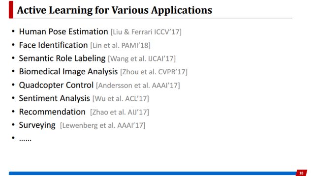 除此以外还有很多用主动学习解决不同应用问题的研究,这里不再一一介绍。以上就是对过去一年主动学习方面新出现的三个趋势的简单介绍和总结,谢谢大家。