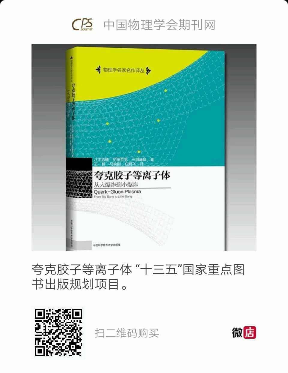 众所周知, 强相互作用基本粒子(夸克和胶子)的动力学是由量子色动力学(QCD)描述的。根据QCD, 由质子和中子构成的普通核物质在高温高压下发生相变, 当温度高于1012 K时, 核物质转变为热夸克胶子等离子体, 当密度大于1012 kg/cm3时,核物质转变为冷夸克等离子体。这两种相变有可能在早期宇宙或致密星核心中发生。现在已经可以在实验室里利用重离子加速器实现高能核核碰撞以产生热密火球或小爆炸,我们期待核子在核核的剧烈碰撞中熔解出其组分, 形成夸克胶子等离子体。