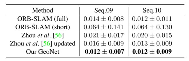 表3:KITTI里程计数据集上的绝对轨迹误差。本文的方法比其他的方法精度都高。