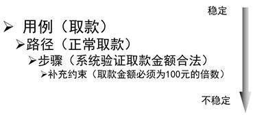 我们来看看涉众利益的交锋如何影响了需求。步骤1有设计约束通过磁条卡或芯片卡提交账户号码,这是为了照顾储户“方便”的利益。