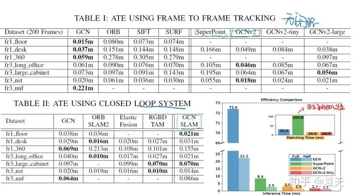 在V2版本中借鉴SuperPoint思想,简化网络结构,并构建与ORBSLAM2相同的二进制描述子来加速匹配,并结合ORBSLAM2,替换掉特征提取部分,构建了TX2上实时的GCNv2-SLAM.
