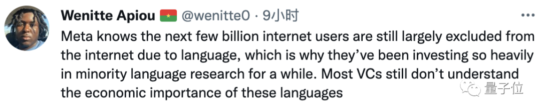 除了AI业内关心他们如何支持语料稀缺的冷门语言,以及如何在BLEU基准测试上提高7个点以外。也有来自西非的网友认为,语言障碍正是全球互联网用户数量进一步增长的关键。