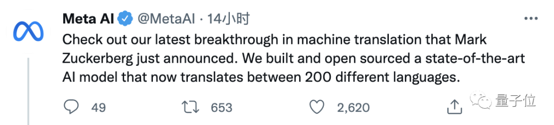 这个翻译模型,不仅支持200+语言之间任意两两互译,还是开源的。Meta AI在发布开源大型预训练模型OPT之后,再次发布最新成果NLLB。