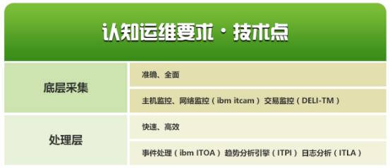 在采访中,郑雄给记者列举了这样一个例子,以某全国股份制银行为例,在实践过程中故障发现达到 99.8%,做到了秒级发现,分钟级处理,所涉及的产品涵盖:ibm itcam\ibm itoa\deli-tm\deli-ump。