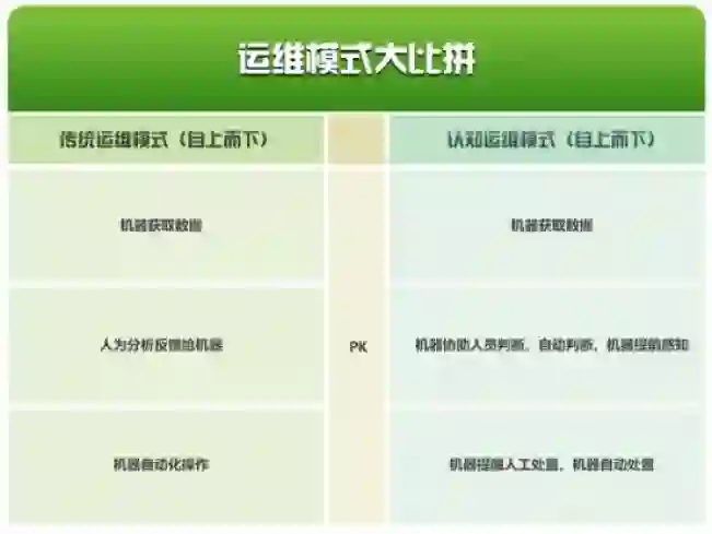 对比数据显示,认知运维模式提高了机器在整个运维周期的工作比例,部分环节接管了人力的工作,弥补了人力在运算、思考方面的不足,拓展了运维能力。