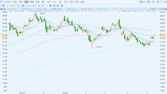 吉利汽车(00175.HK)今日涨3.74%,报23.55港元,最新总市值为2114亿港元。