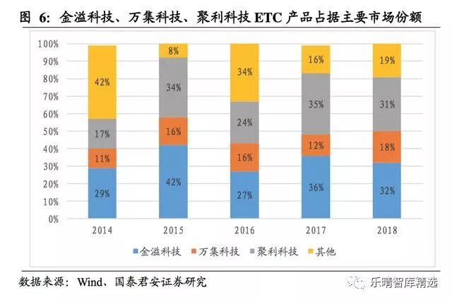 2018年金溢科技、万集科技和聚利科技占ETC市场份额81%。ETC市场中,车载电子标签是ETC市场的主体。