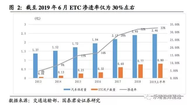ETC当前渗透率仅占30%左右,未来一至两年市场有很大需求量。截至2018年底,ETC用户数量共0.77亿人,汽车保有量共2.4亿辆,ETC渗透率仅占30%左右。