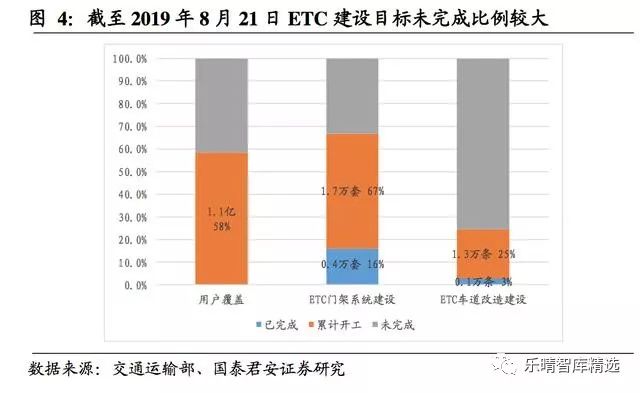 截至2019年8月21日,全国ETC用户累计达到1.1亿人,完成发行总任务的58%。全国ETC门架系统建设全国累计开工1.7万套,占总计划的667%;其中,已完工0.4万套,占总计划的16%。