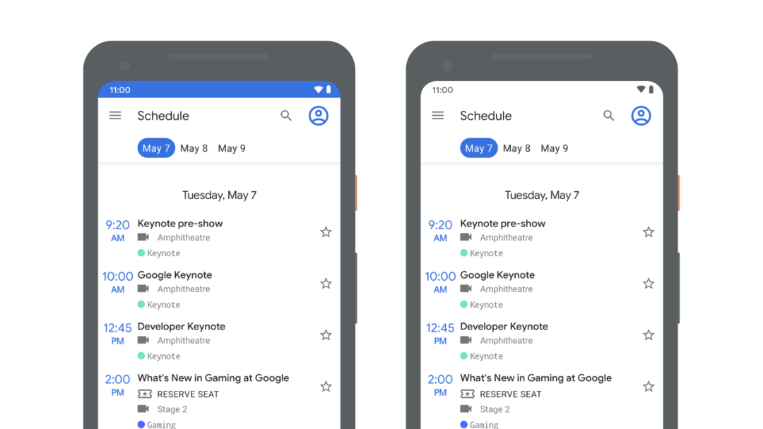 两个应用,左边的使用的是深色状态栏背景,右边的使用的是浅色背景