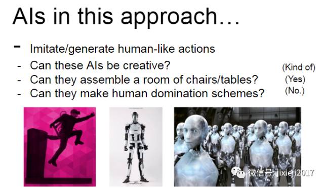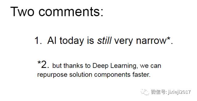 目前没有文献提及这样的系统,但 FAIR 追求的研究主题与其人工智能展望也与各家公司的商业利益相一致。常见的相关话题包括可视化处理,特别是分割和目标探测、数据挖掘、自然语言处理、人机交互和网络安全。目前深度学习技术主要用于解决实际问题,并不代表一个统一框架,所以不包括在此次调查的范围内。当然,鉴于深度学习的潜力,这一方法将来可能会在认知架构中发挥作用。