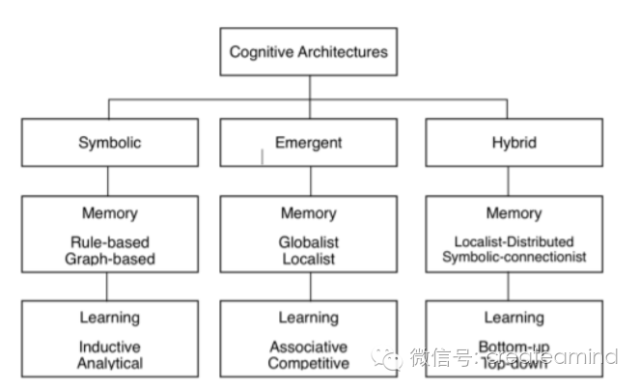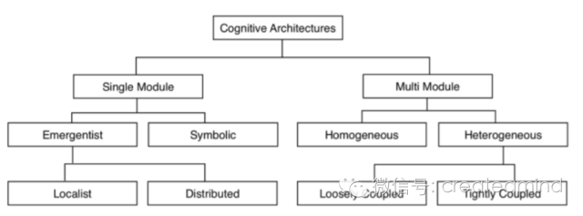 有趣的是,层创式架构只在最近时期才获得更多的比重,尽管这一方向的研究至少与传统人工智能一样活跃。例如 Langley 等人 [22] 在他们的调查中没有加入联结主义模型,因为他们没有发现这一架构与符号模型和混合模型相同的功能。