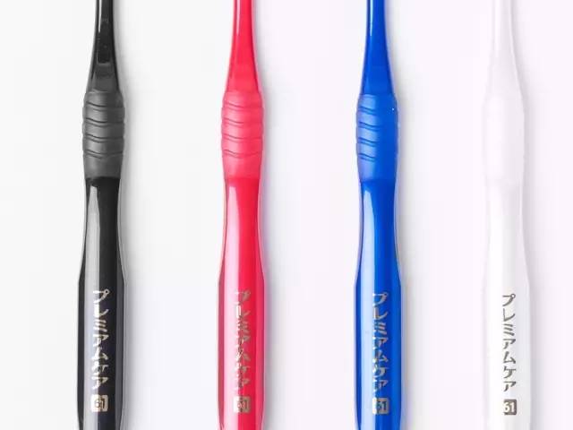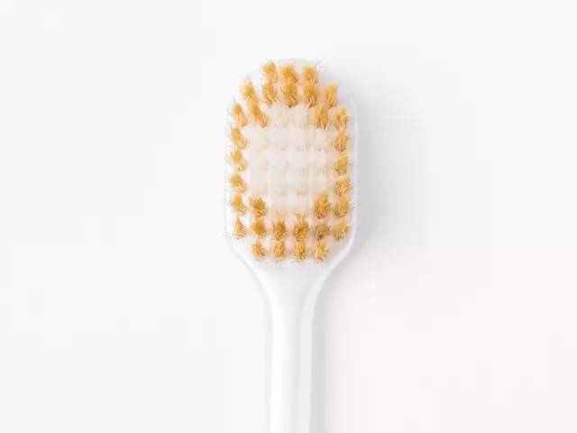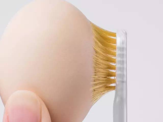 这款牙刷植毛的手法,也颠覆了传统牙刷垂直植毛的做法,用来固定刷毛的金属片与垂直面成15°角,能避免刷动时张力过大,提高刷头强度。