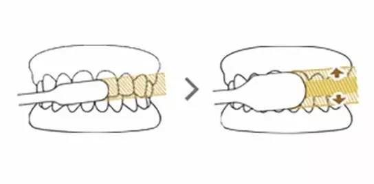 传统牙刷(左)与宽头牙刷(右)刷牙形态对比