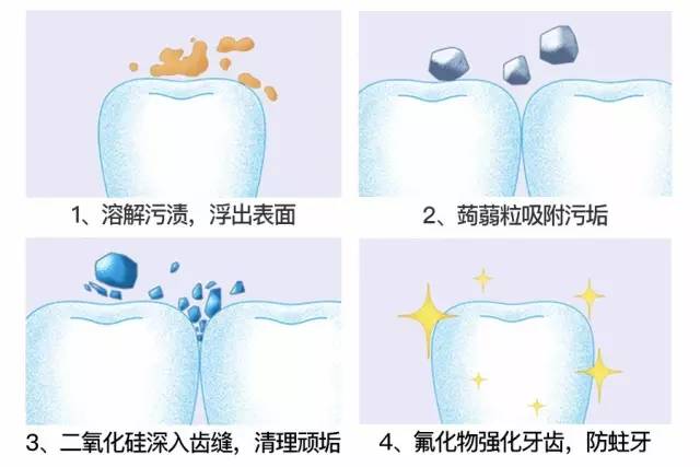 加上牙膏中二氧化硅和氟化物的成分,能进一步清洁和保护牙齿。