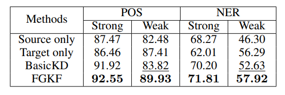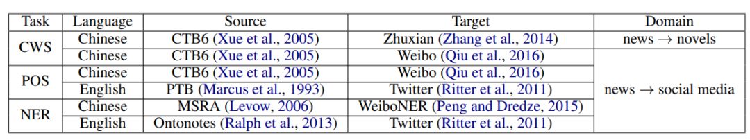 我们在两种语言,三个任务上复现了序列标注领域适应的相关工作,我们的方案均获得了最好的结果。