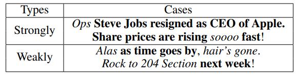 表1 来自于社交媒体领域的推特和源领域(新闻领域)有不同的领域相关性。在每个例子中,加粗的部分与源领域强相关,斜体的部分与源领域弱相关。