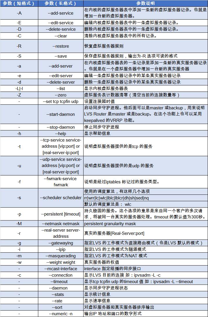ipvsadm参数说明:(更多参照 man ipvsadm)