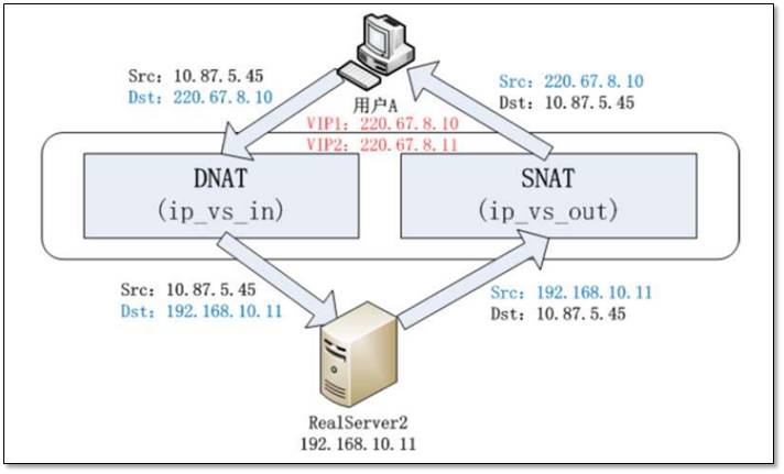 为了解决上述问题,开发出FULLNAT,该模式和NAT模式的区别是:数据包进入时,除了做DNAT,还做SNAT(用户ip->内网ip),从而实现LVS-RealServer间可以跨vlan通讯,RealServer只需要连接到内网。类比地铁站多个闸机。
