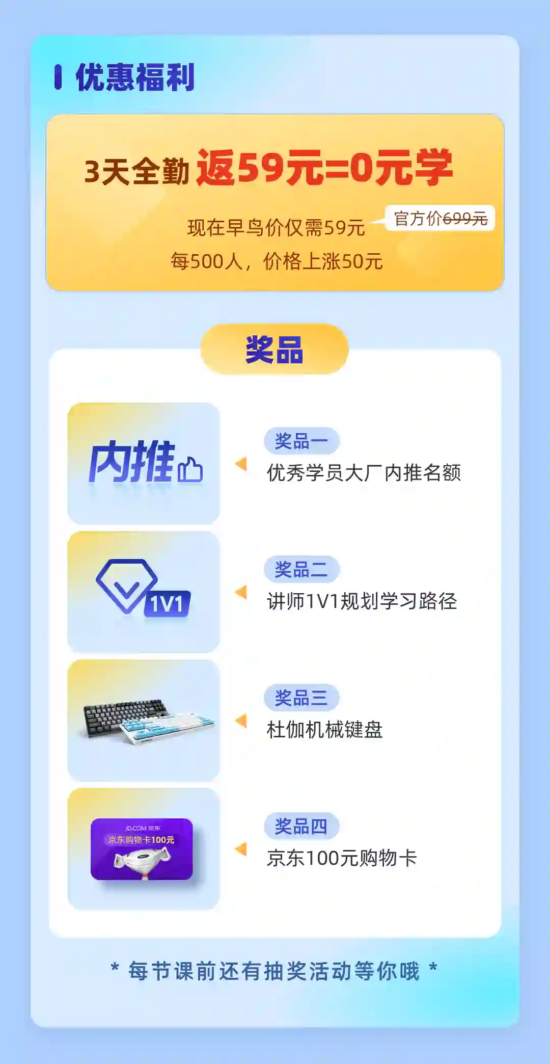 本次训练营开课时间(8月24/25/27日 19:30),希望各位同学报名后: