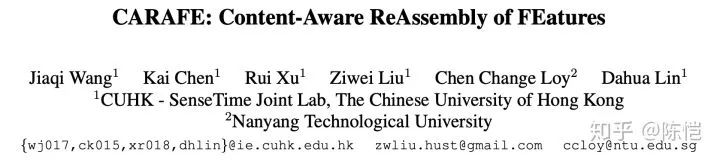 这篇论文被 ICCV 2019 接收为 oral presentation。之前我们主要研究物体检测(例如 Hybrid Task Cascade,Guided Anchoring,Libra R-CNN 和 Prime Sample Attention),这次尝试跳出单纯的物体检测框架,解决一些通用模块和算子的问题。上采样操作是各种网络结构里广泛使用的运算之一,我们提出了一个轻量级的通用上采样算子 CARAFE(音[kə'ræf]),相对最近邻和双线性等上采样算子,在不同任务中都取得了显著的提升,同时只引入很少的参数量和计算代价。