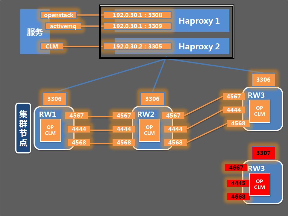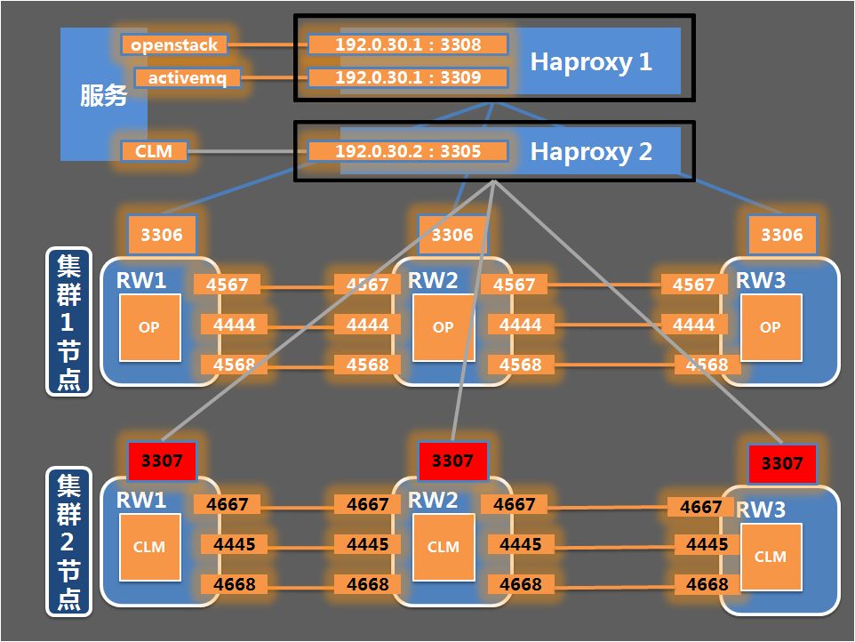 另外,还需要修改HAproxy配置文件中CLM数据库的访问端口,将CLM数据库实例的对外服务端口修改为3307: