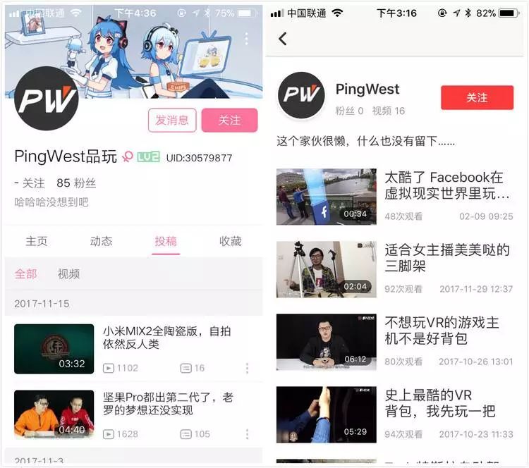 我们还发现,快视频上的那个山寨 PingWest 账号,上传的视频数居然比我们自己在 B 站上传的还多!换句话说,这个山寨号不仅有所筛选地扒了我们在 B 站的内容,还仔细地整合了我们在其他平台的视频内容过来。