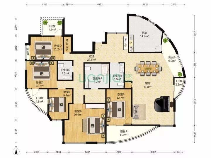 看着406平米的豪宅被设计成这样的户型,中企哥心痛的同时也很服气:有钱人,就是任性。