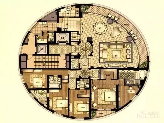 看了那么多辣眼睛的户型,中企哥最后给大家看一套位于上海徐汇,坐拥360度美景,吸收天地灵气的霸气户型——日不落大豪宅。