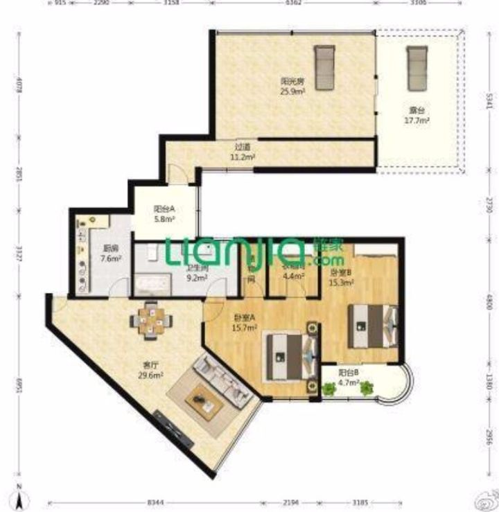 目前,这套二手房依然挂在交易网站上,户型图已经悄咪咪地去掉过道部分。虽然你可能看不起这款人气冠军“跑道户型”,觉得它更像下水道,但人家的售价也是杠杠的: