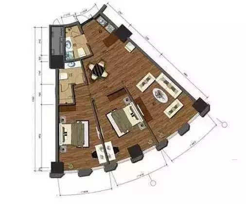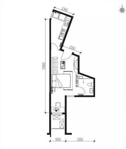 中企哥不禁想到曾经见过的一个酷似马桶的户型。面积虽小,五脏俱全,一室一厅一厨一卫一阳台。卧室宽敞,肚大能装,躺在桶身造型的卧室里,会有一种稳坐钓鱼台的感受。由于有南向阳台和厨房的北窗,从某种意义讲,勉强能算一个南北通透的户型......