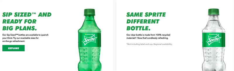雪碧在一些国外市场已经从绿瓶改用透明塑料瓶等,特定的口味,如樱桃和无糖,只用透明塑料。可口可乐周三还宣布,瓶装水品牌 Dasani 将由 100% 回收的 PET 塑料制成。新闻稿称,与 2019 年相比,此举将减少 2000 万磅塑料垃圾。通过 2018 年宣布的“无浪费世界”倡议,可口可乐的目标是到 2030 年在其瓶罐中使用至少 50% 的可回收材料。