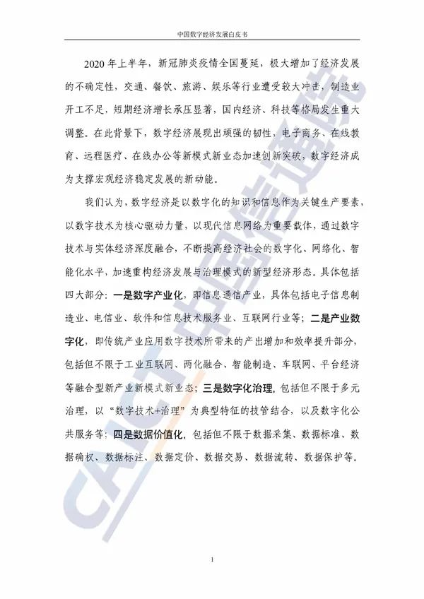 近日,中国信通院发布《中国数字经济发展白皮书(2020年)》,对我国各地区数字经济发展、各行业数字化转型、各领域发展亮点、数字经济政策体系等进行了深入分析。其中,数字经济测算方法被纳入G20(阿根廷)《数字经济测算工具箱》,测算结果被广泛引用。