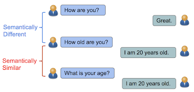 在「Learning Semantic Textual Similarity from Conversations」这篇论文中,我们引入一种新的方式来学习语义文本相似的句子表示。直观的说,如果句子的回答分布相似,则它们在语义上是相似的。例如,「你多大了?」以及「你的年龄是多少?」都是关于年龄的问题,可以通过类似的回答,例如「我 20 岁」来回答。相比之下,虽然「你好吗?」和「你多大了?」包含的单词几乎相同,但它们的含义却大相径庭,所以对应的回答也相去甚远。